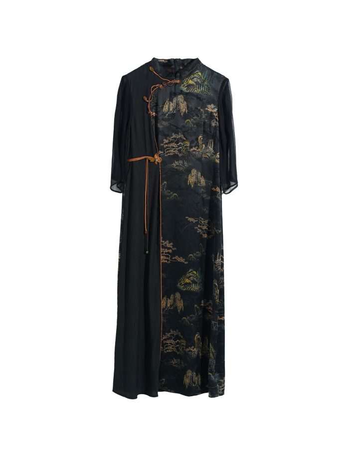 Be the first to review “AAA3-Ink landscape painting silk heavy satin mulberry silk dress” Cancel reply