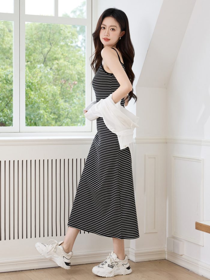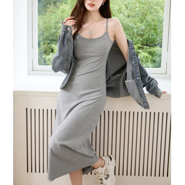MMM knee-to-ankle suspender dress women’s summer new pure cotton vest long skirt