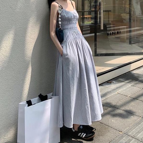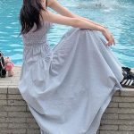 Q3 Korean style women’s long striped dress slim casual