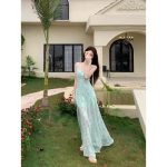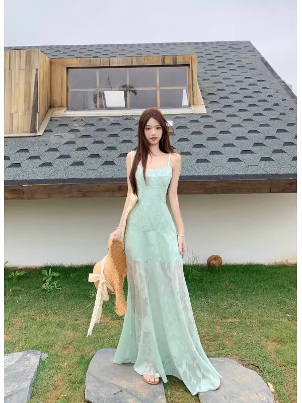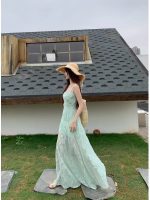 SZ999 Summer new French style fresh and sweet suspender dress for women seaside vacation wear waisted mid-length skirt