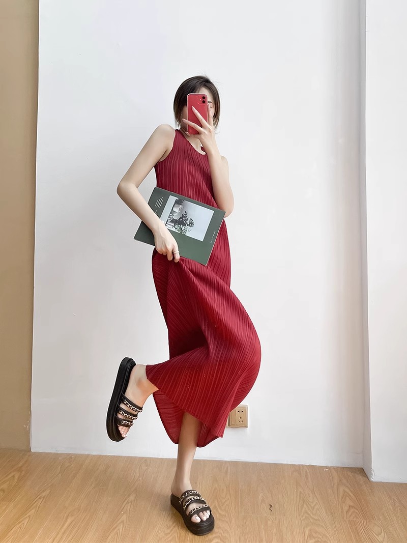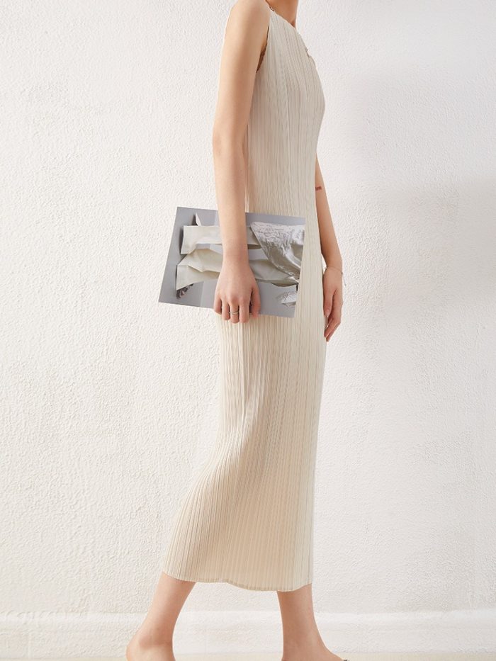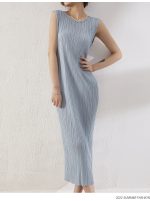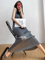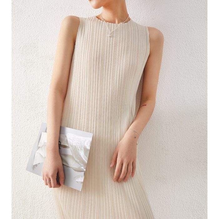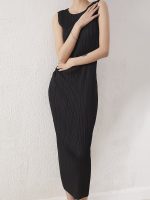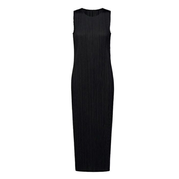 VVV dress women’s Miyake spring and summer temperament pleated round neck sleeveless slim straight bottoming skirt